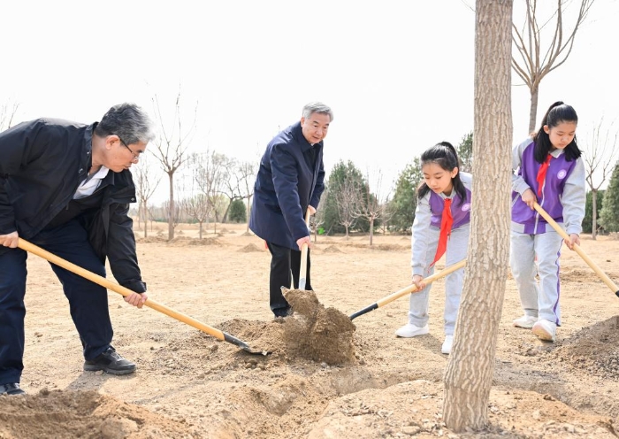 M. Xi et d'autres dirigeants du Parti et de l'Etat, dont Li Qiang, Zhao Leji, Wang Huning, Cai Qi, Ding Xuexiang et Li Xi, sont arrivés dans la matinée sur le site de plantation d'arbres situé dans l'arrondissement de Changping, à Beijing. M. Xi a salué la foule d'un signe de la main avant de prendre une pelle pour participer à l'activité. Il a planté de jeunes arbres de plusieurs essences différentes.